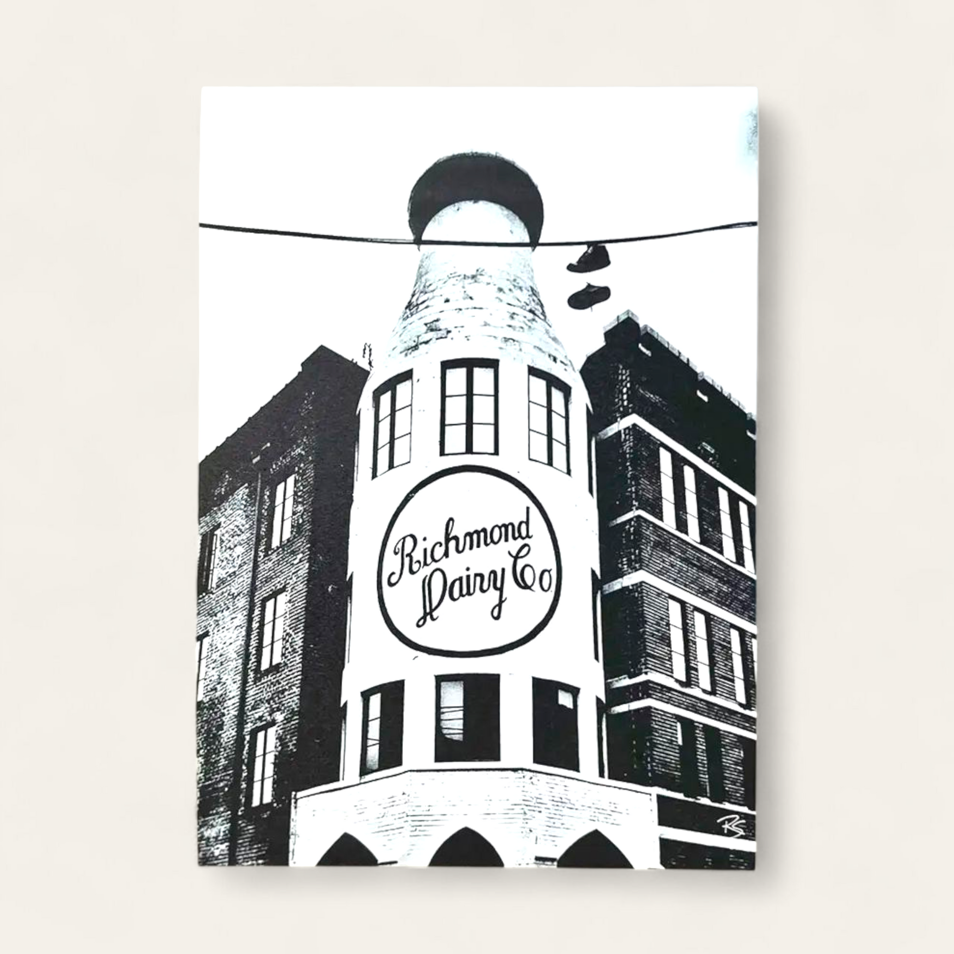 RVA Dairy is a photograph of the famous Richmond Dairy (Milk Bottle Building) in the Jackson Ward Neighborhood of Richmond, VA. This iconic building was the birthplace of the art/metal band GWAR and a symbol of Richmond's creative class. - 8 x 10" - Printed on 100% recycled card stock. - Comes wrapped in a compostable clear sleeve with branded packaging. - It makes a great gift! Give art that makes you smile.